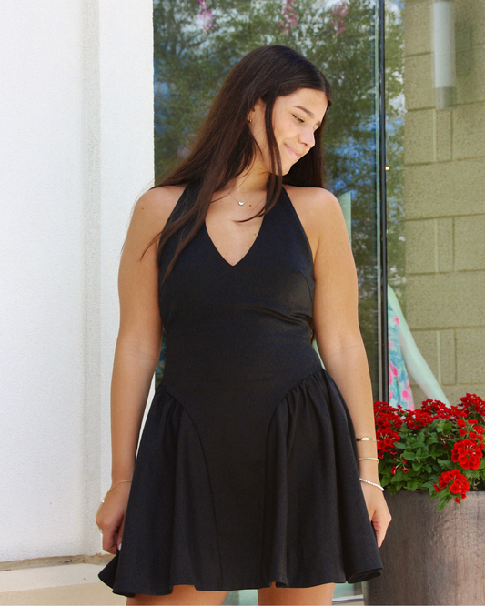 ASTR Meana V-Neck Halter Mini Dress | Black