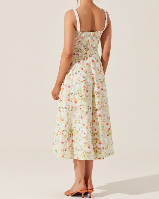 ASTR Julietta Floral Corset Midi Dress | Orange Green Floral