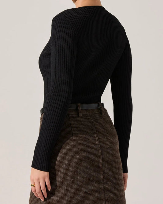ASTR Lynly Ribbed Keyhole Sweater | Black