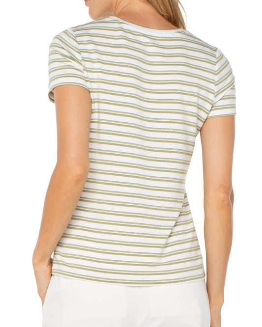 Liverpool Short Sleeve Crew Neck Classic Knit Tee | Whipped Cream Lotus Stripe