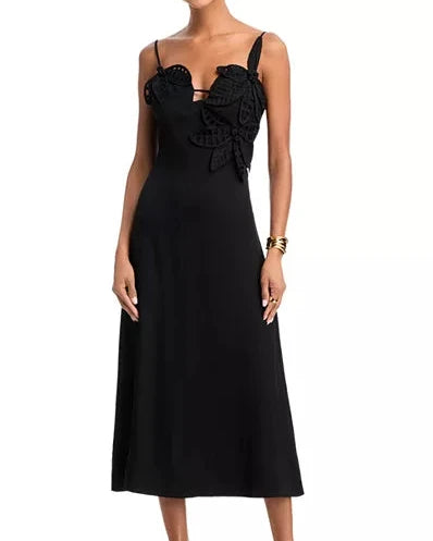 Farm Rio Black Shiny Chita Short Sleeve Midi Dress