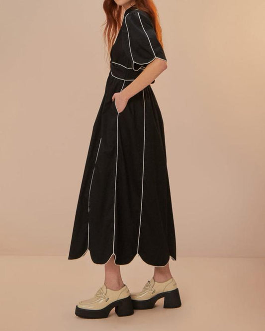 Farm Rio Black and White Short Sleeve Midi Dress