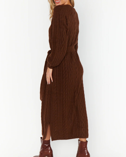 Show Me Your Mumu Bard Sweater Dress | Chocolate Cable Knit