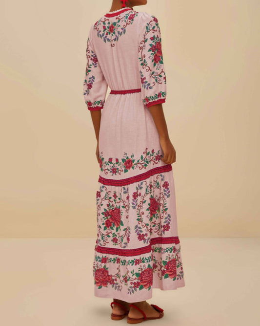 Farm Rio Pink Flower Tapestry Maxi Dress