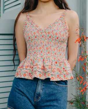 ASTR Baylin Floral Peplum Top | Pink Multi Floral