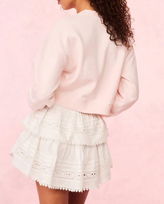 Love Shack Fancy Ruffle Mini Heart Eyelet Lace Skirt