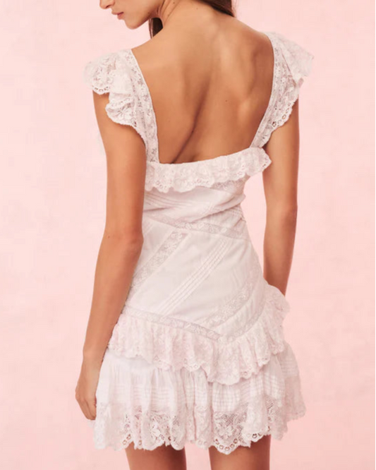Love Shack Fancy Bensley Cotton & Lace Mini Dress | Tonal Pink