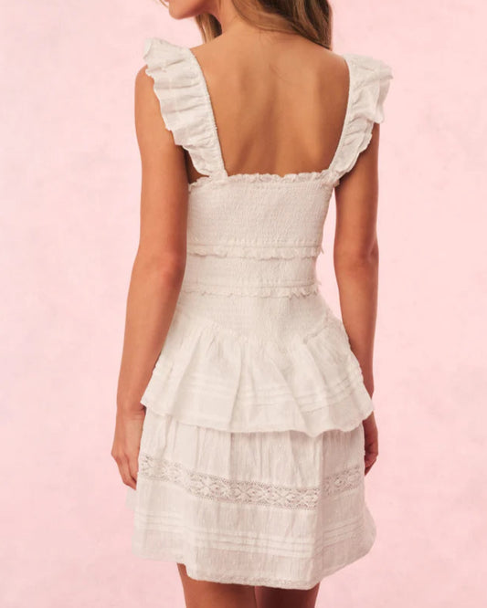 Love Shack Fancy Lovine Cotton Smocked Mini Dress | Off White