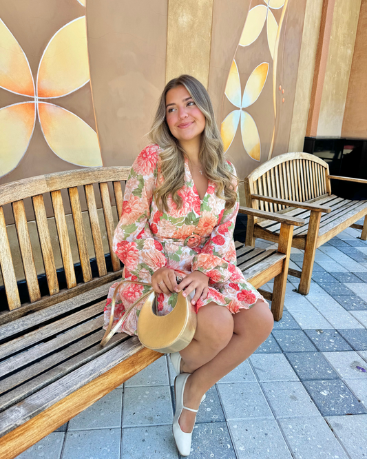 • Mink Pink Aida Long Sleeve Mini Dress | Apricot Floral