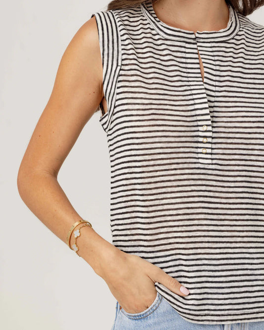 Sundays Stripe Linen Sky Tee | Mono Luxe Stripe