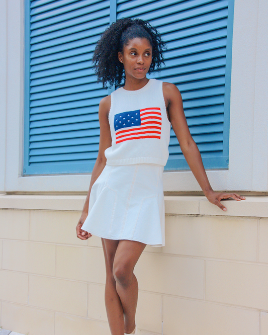 Love Shack Fancy Amrina Cotton Floral Skirt | White Peach