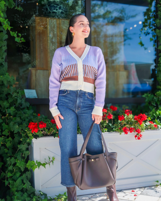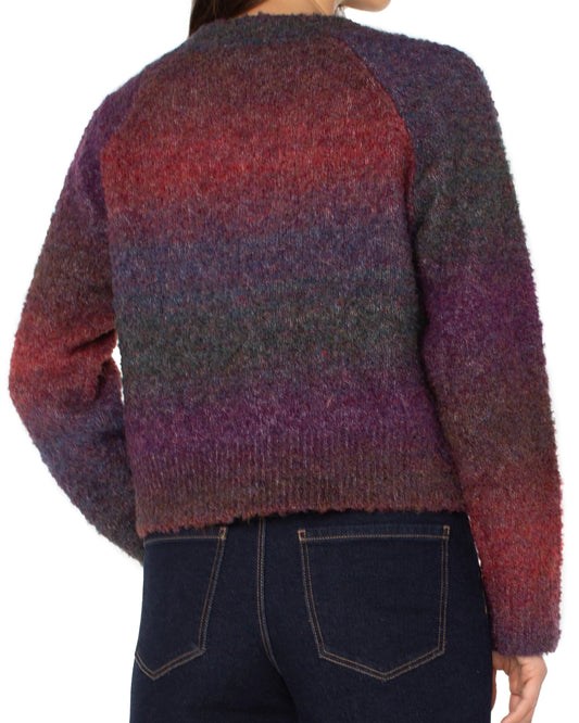 Liverpool Long Sleeve Cardigan Sweater | Berry Burgundy Ombre
