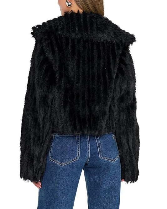Show Me Your Mumu Salt Lake City Cropped Jacket | Black Faux Fur