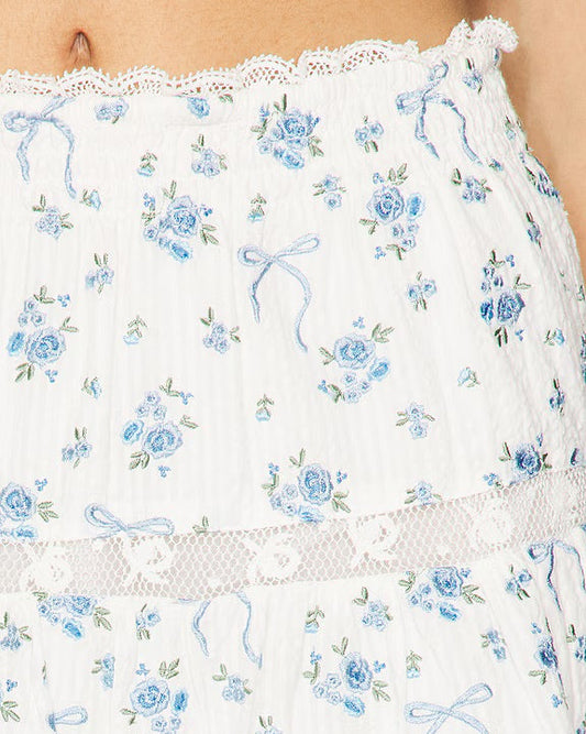 Love Shack Fancy Ruffle Mini Blue Floral Skirt | Skylight Blue