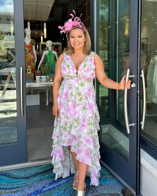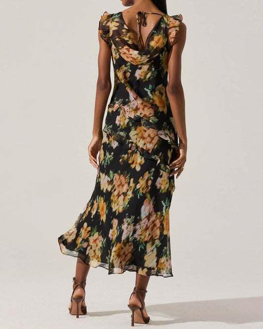 ASTR Cytherea Asymmetric Ruffle Midi Dress | Lavender Floral