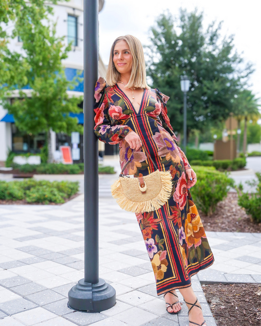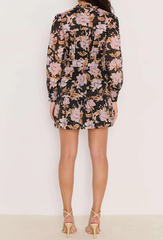 Farm Rio Border Print Long Sleeve Dress | Chenille Flowers Black