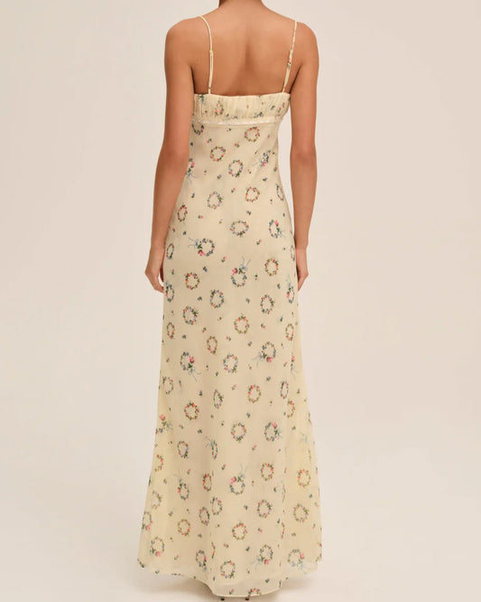 Love Shack Fancy Nocelle Cotton Floral Maxi Dress | White Peach