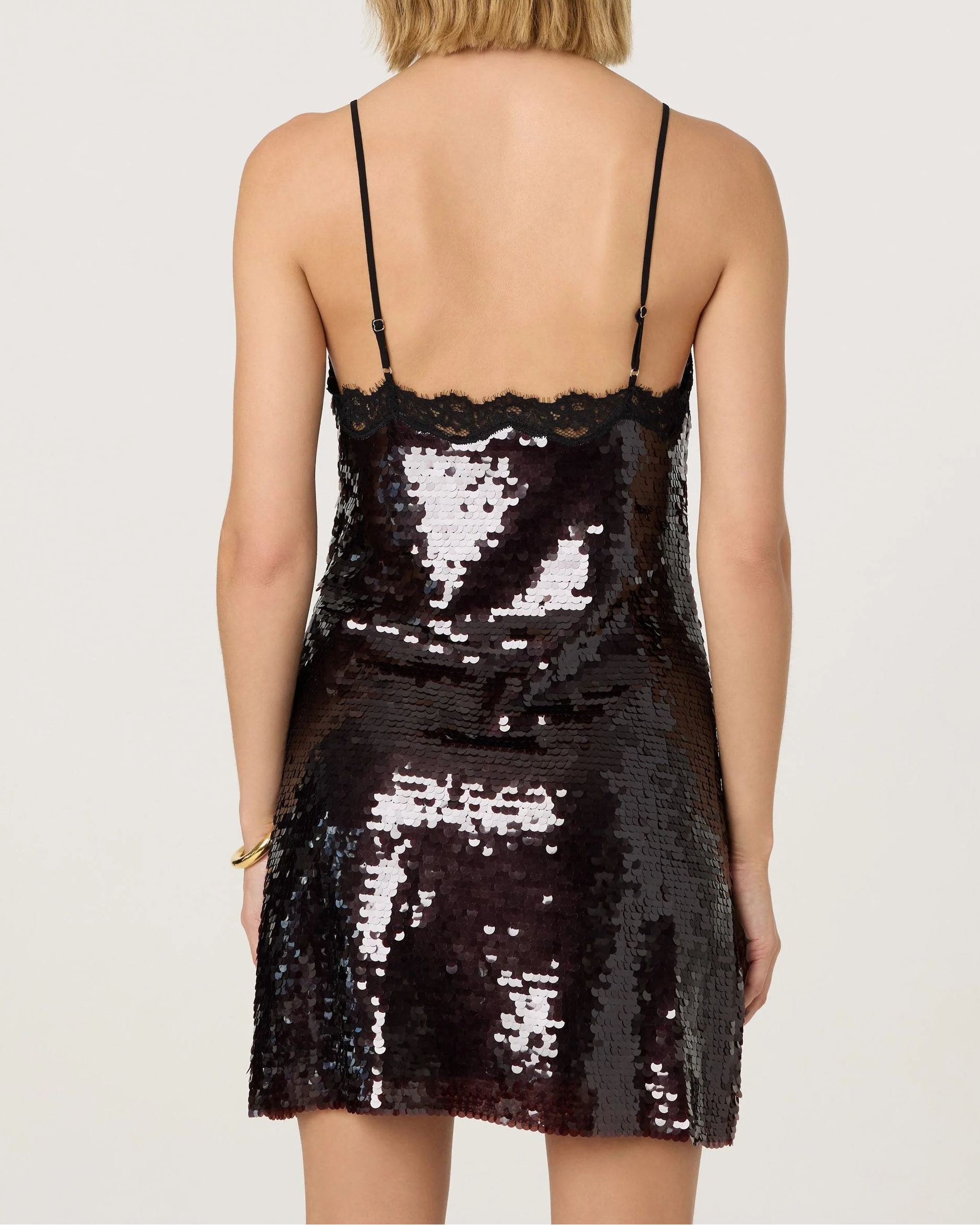 - Lace trim sequin dress