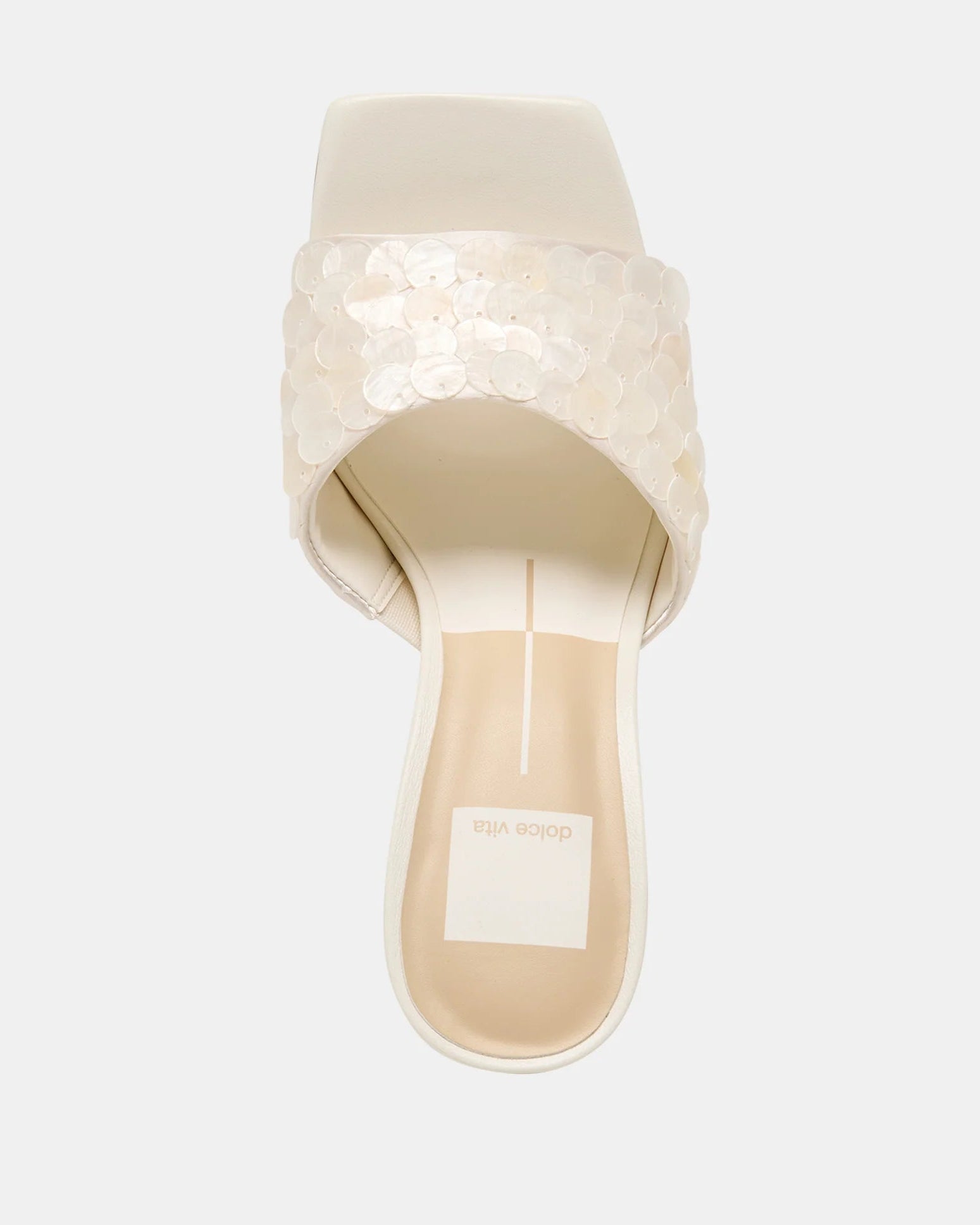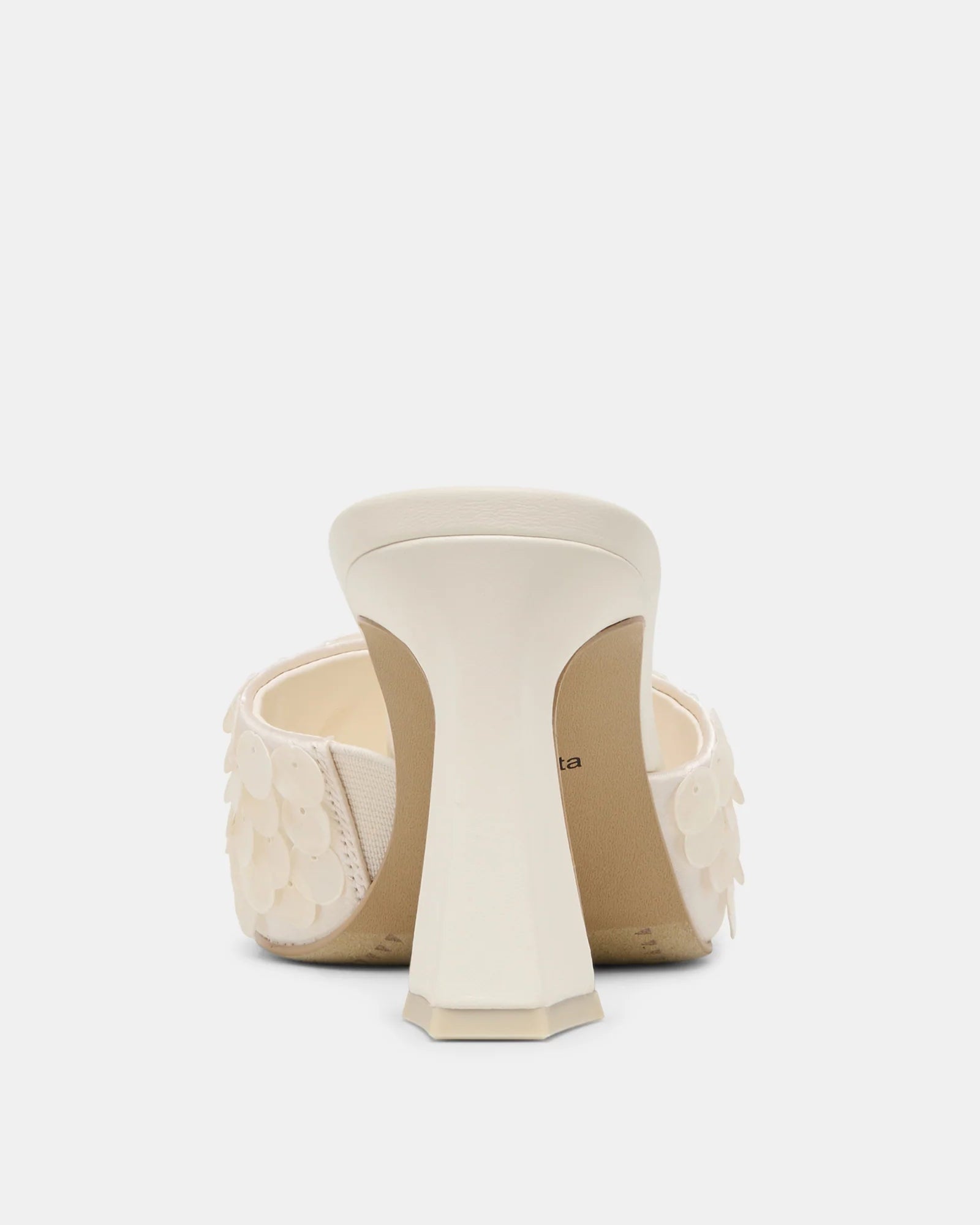 Nandy confetti shimmers and shines with every step. This mule-style heel features a festive splash of ivory sequins, an architectural heel, and a contemporary square toe. Easy to style for bridal moments, summer events, or any occasion that calls for a touch of glow, this slip-on heel delivers effortless polish from day to night. Her sustainably-crafted and sleek silhouette pairs well with both understated and risk-taking looks like embellished mini dresses, neutral matching sets, and crisp high waisted trousers.
