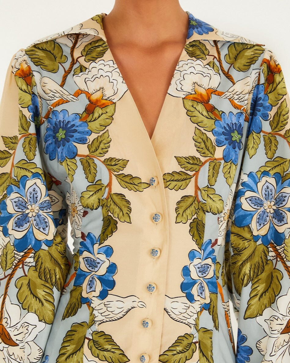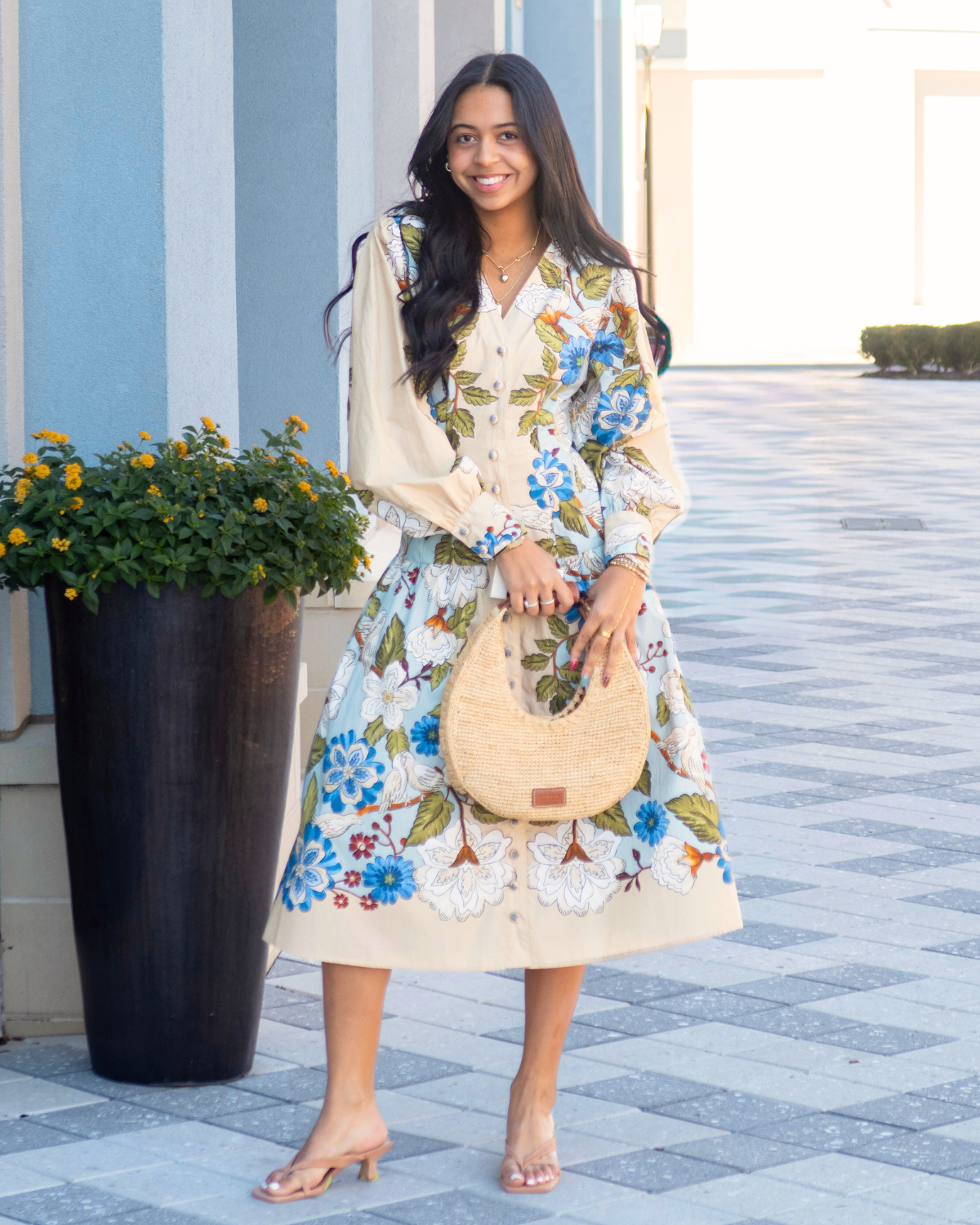 Farm Rio Sand Garden Scarf Long Sleeve Organic Cotton Midi Dress