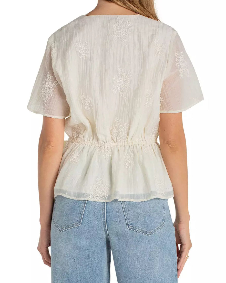 A modern classic with a feminine twist. The wrap-front design and self-tie detail create a flattering shape, while short sleeves and soft woven fabric ensure comfort and versatility from day to night. Pairs perfectly with jeans, skirts, or tailored pants for a polished everyday look.