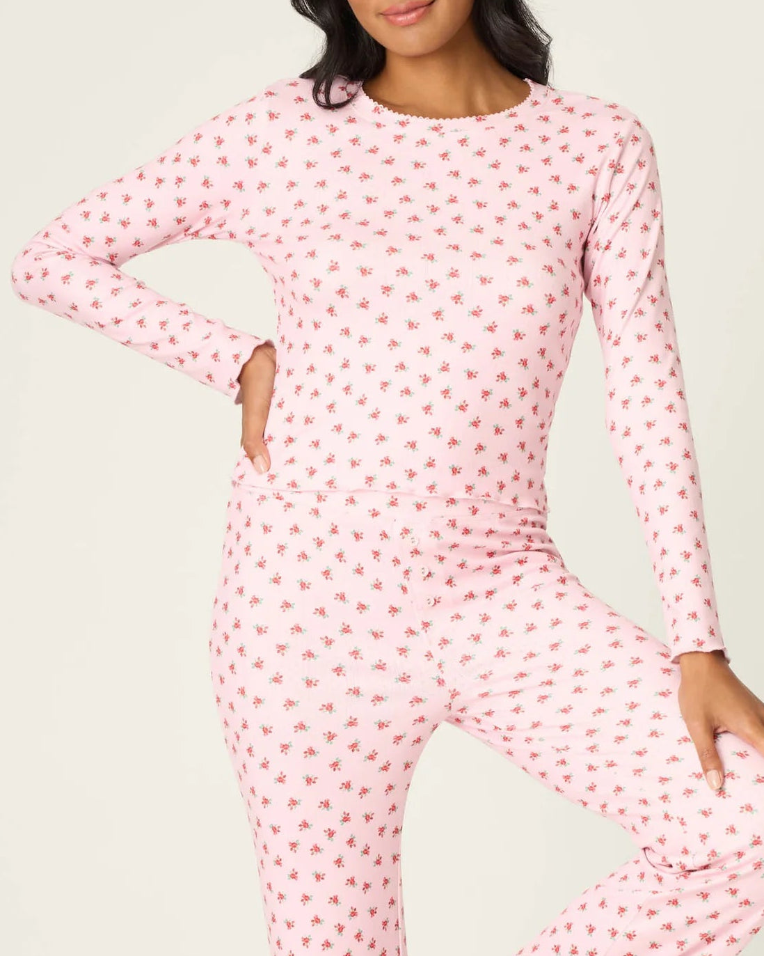 PJ Salvage Crazy For The Holidays Ditsy Floral Print Long Sleeve Top