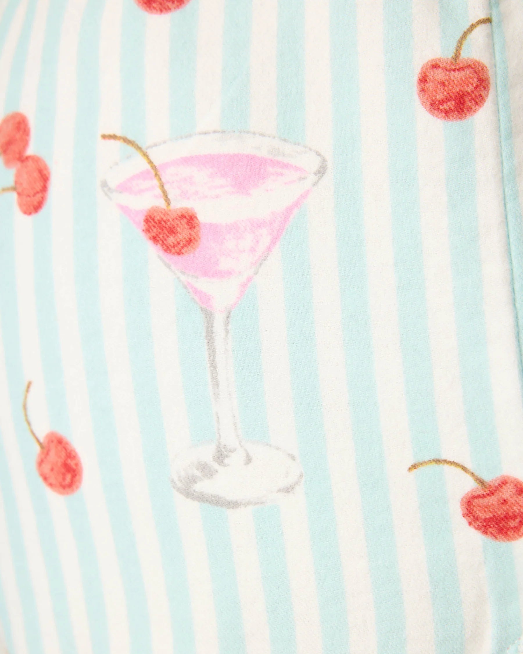 Minty stripes, pink cocktails, and cheery little cherries—these boxer-style lounge shorts bring happy hour vibes to your off-duty routine. Made from soft cotton in a classic twill weave, they feature contrast trim and an easy elastic waist. A playful pick for sleepy nights, slow mornings, or kicking back with your favorite drink in hand.